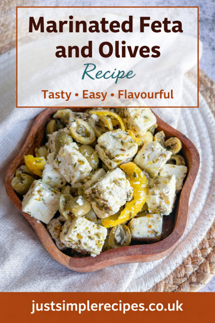 Marinated olives and feta is a bold, Mediterranean-inspired appetiser with creamy feta cubes, briny green olives, garlic, lemon peel and herbs steeped in extra virgin olive oil. It's a no-cook, make-ahead dish that's ready in 10 minutes of prep and sits overnight in the fridge. Perfect for meze boards, parties, or a simple snack with bread.