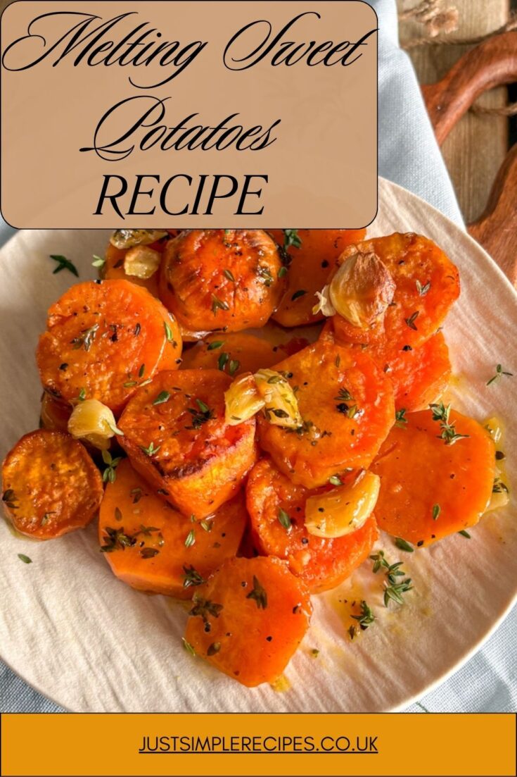 I serve Melting Sweet Potatoes warm, spooning some of the reduced buttery broth over the top just before bringing them to the table. They pair particularly well with roast turkey, grilled chicken breast, baked tofu or even a lentil salad if you want a vegetarian plate. Because the flavour profile is savoury and herbaceous, they also complement festive spreads and Sunday roasts effortlessly.