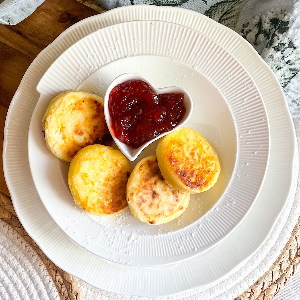 The classic pairing for Ricotta Syrniki is sour cream and jam, but there's plenty of room to play. Honey, maple syrup, condensed milk, fresh berries, lemon curd, fruit compote or a dollop of Greek yoghurt all work beautifully. For a more dessert-style plate, try them with whipped cream and a scoop of vanilla ice cream.