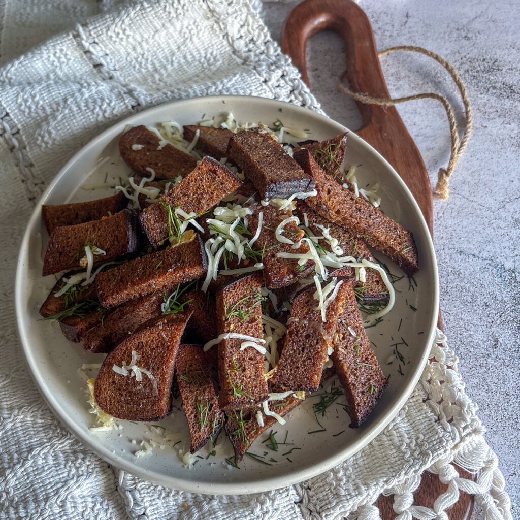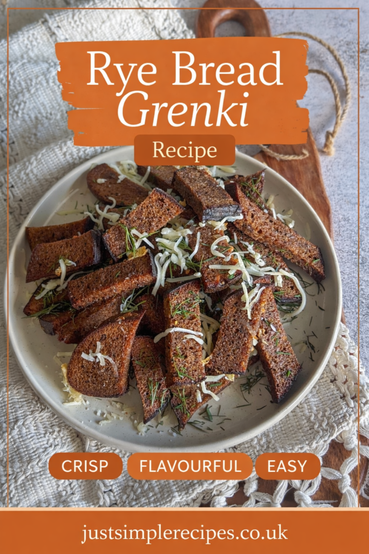 Rye bread grenki are a crunchy, aromatic snack that you can have ready in less than 15 minutes. This garlic grenki recipe is an easy, budget-friendly way to turn a few slices of bread into a hearty, rustic appetiser.